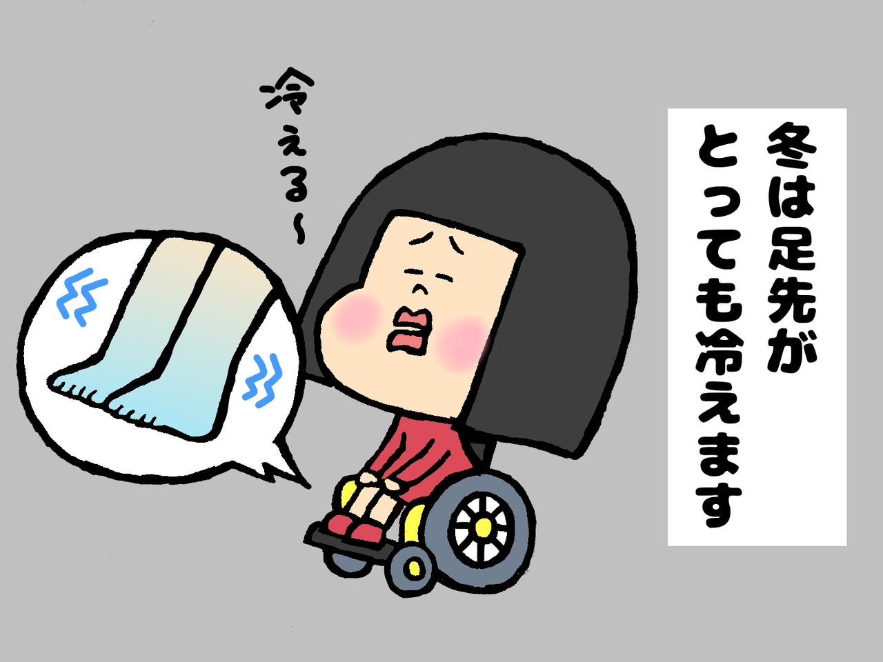 車いすに乗っている私は、靴下を何枚履いても足が冷えがち。