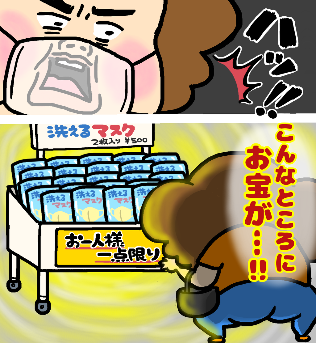 母も違うものを買うのが目的で衣料雑貨屋さんに入ったら、偶然マスクと出会えたそうです!